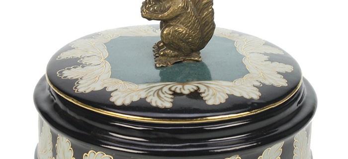 Meander – Decorative porcelain box squirrel – green gold black – 25G549