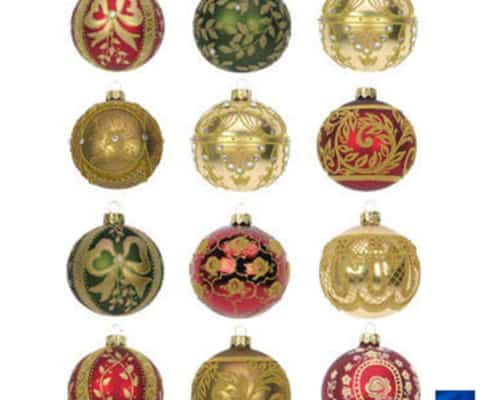 29B18 Xmas balls baroque – glass – hand decorated, set of 12