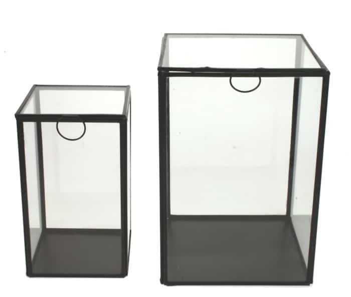 Showcase – Glass with black metal – set of 2