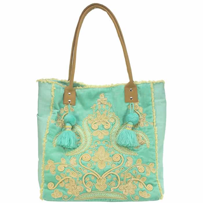 Big bag – Turquoise cream – Embroidery